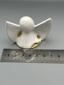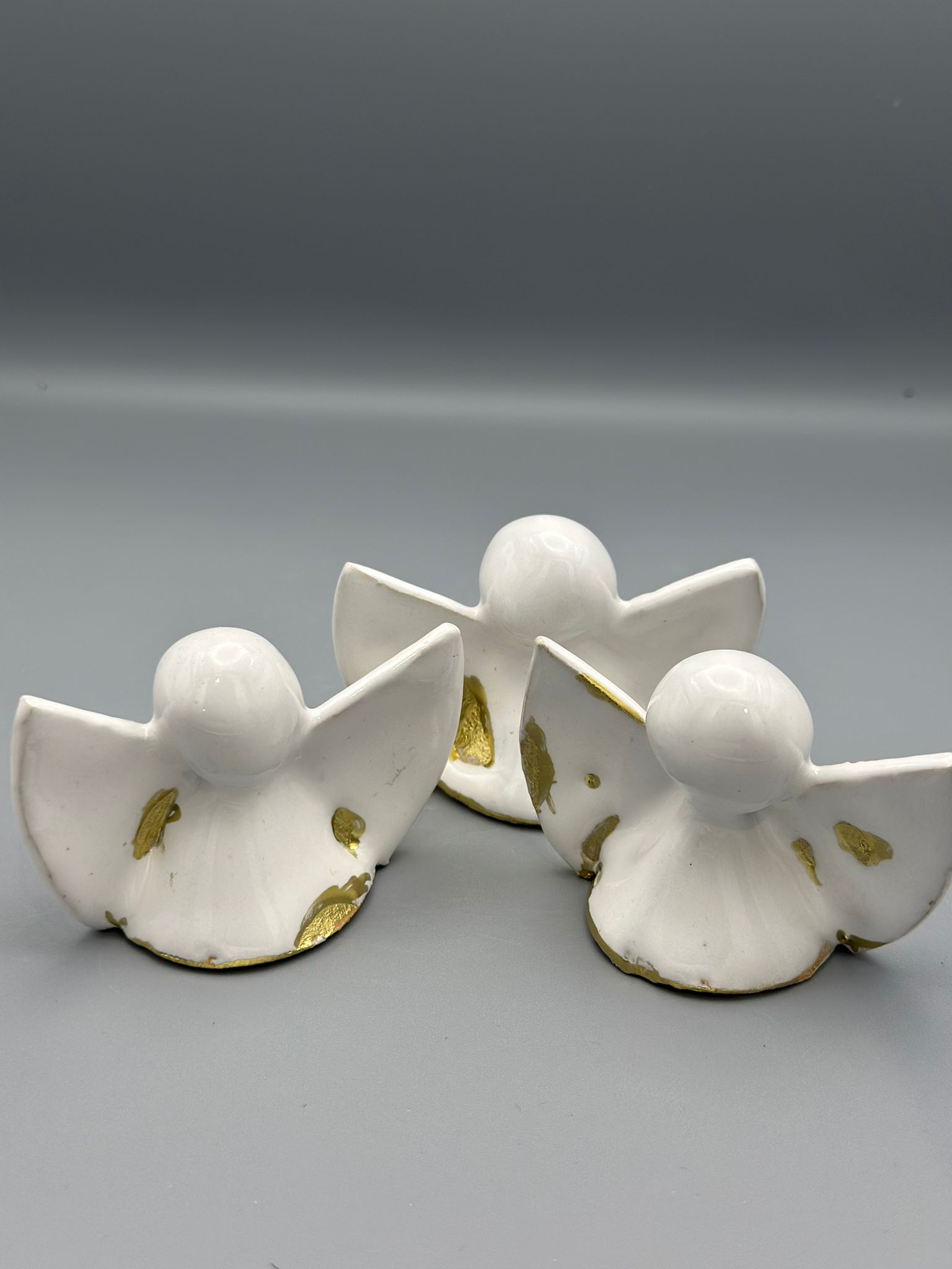 Handmade white ceramic angels with gold accents